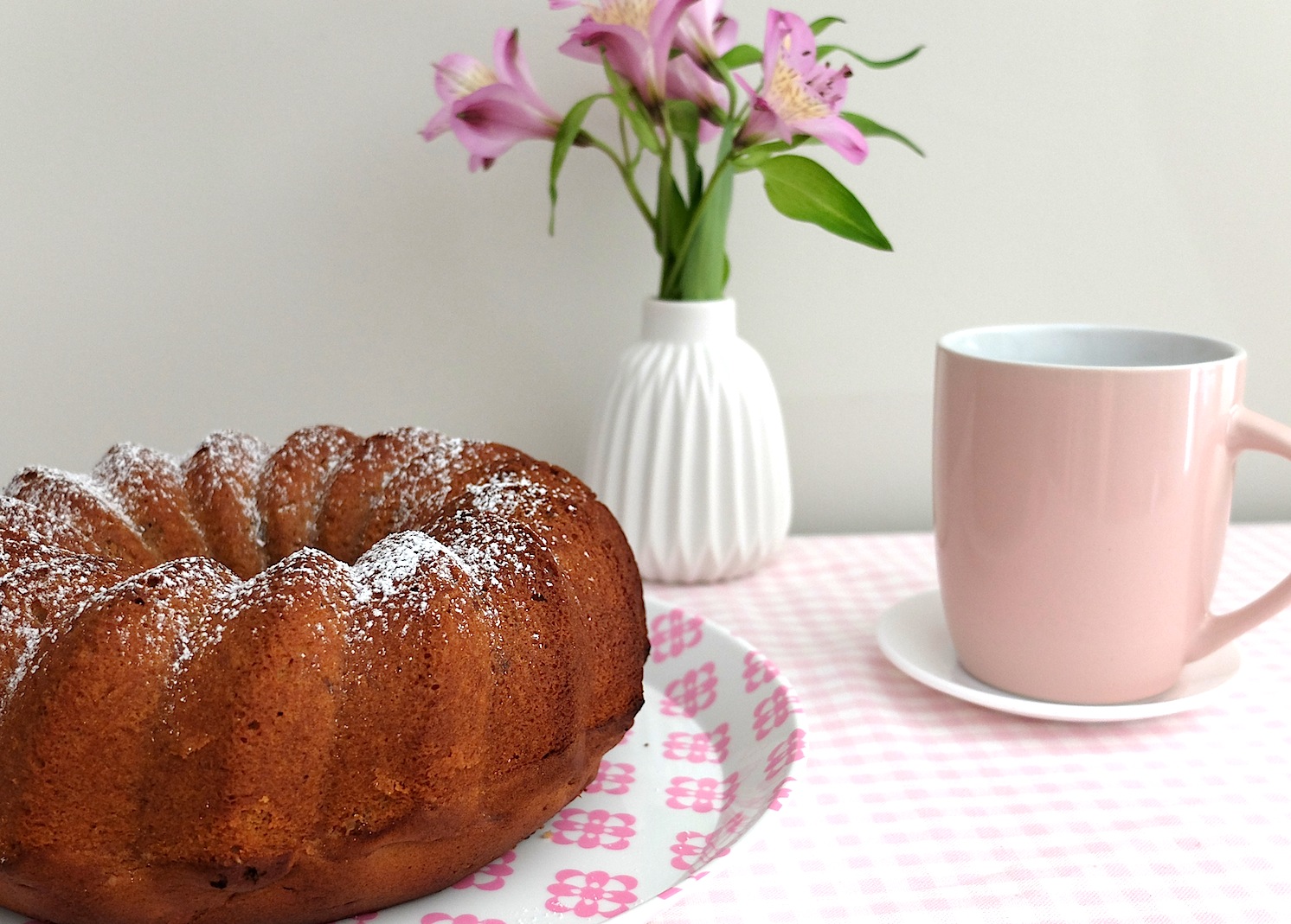 Ahora se han puesto muy de moda estas recetas de pasteles denominados «bundt cake«. En realidad, un bundt cake es un bizcocho hecho en un molde con forma de corona. Los más conocidos son los de la marca Nordic Ware … eso sí, ¡¡preparad el bolsillo si queréis tener uno!! Yo he usado un molde de silicona para hacer este que veis en la fotografía. A ver si os animáis a prepararlo! 🙂